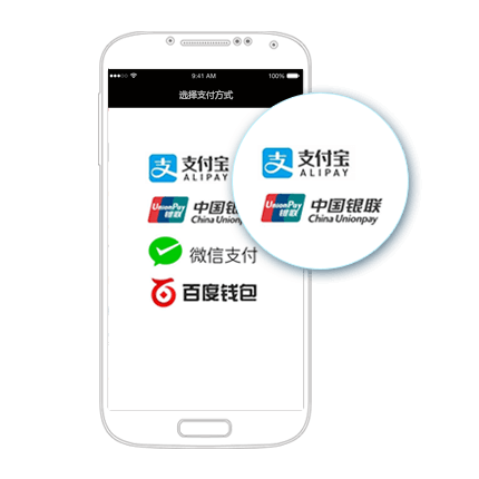 聚合,为iOS/Android原生/H5 App提供支付解决方案:支持微信支付、支付宝支付、银联手机支付、百度钱包等。